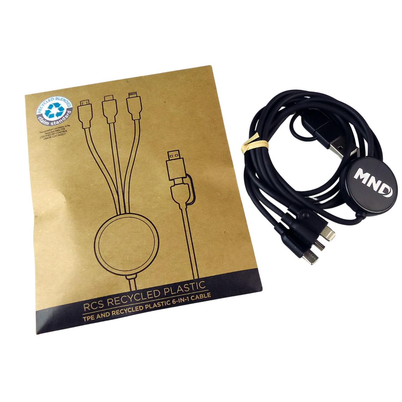 Nabíjecí kabel 6 v 1 z RCS recyklovaného plastu a TPE, černá ID: MND 005 Sklad: 40 ks skladem Cena: 238,00 Kč bez DPH Cena: 287,98 Kč vč. 21% DPH Přidat do košíku Přidáno...